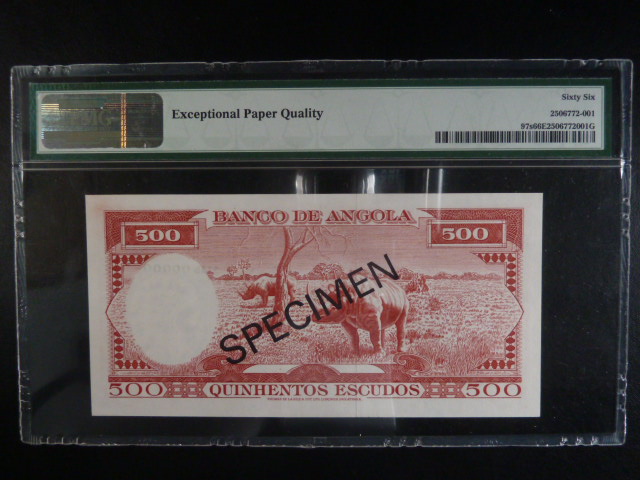 ANGOLA, 500 Escudos 1970 Specimen, PMG 66, BNB. B421bs1