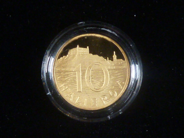 • Au (0,986, 2,52g) replika slovenského 10 hal 1942, náklad 20 ks
