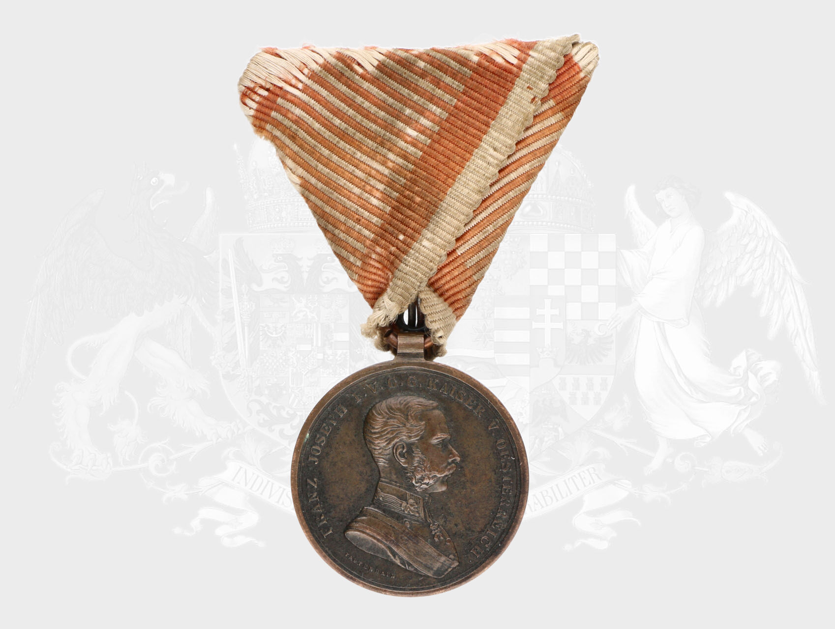 Bronzová medaile za statečnost, 8. vydání 1914-1917 F.J.I., původní vojenská stuha