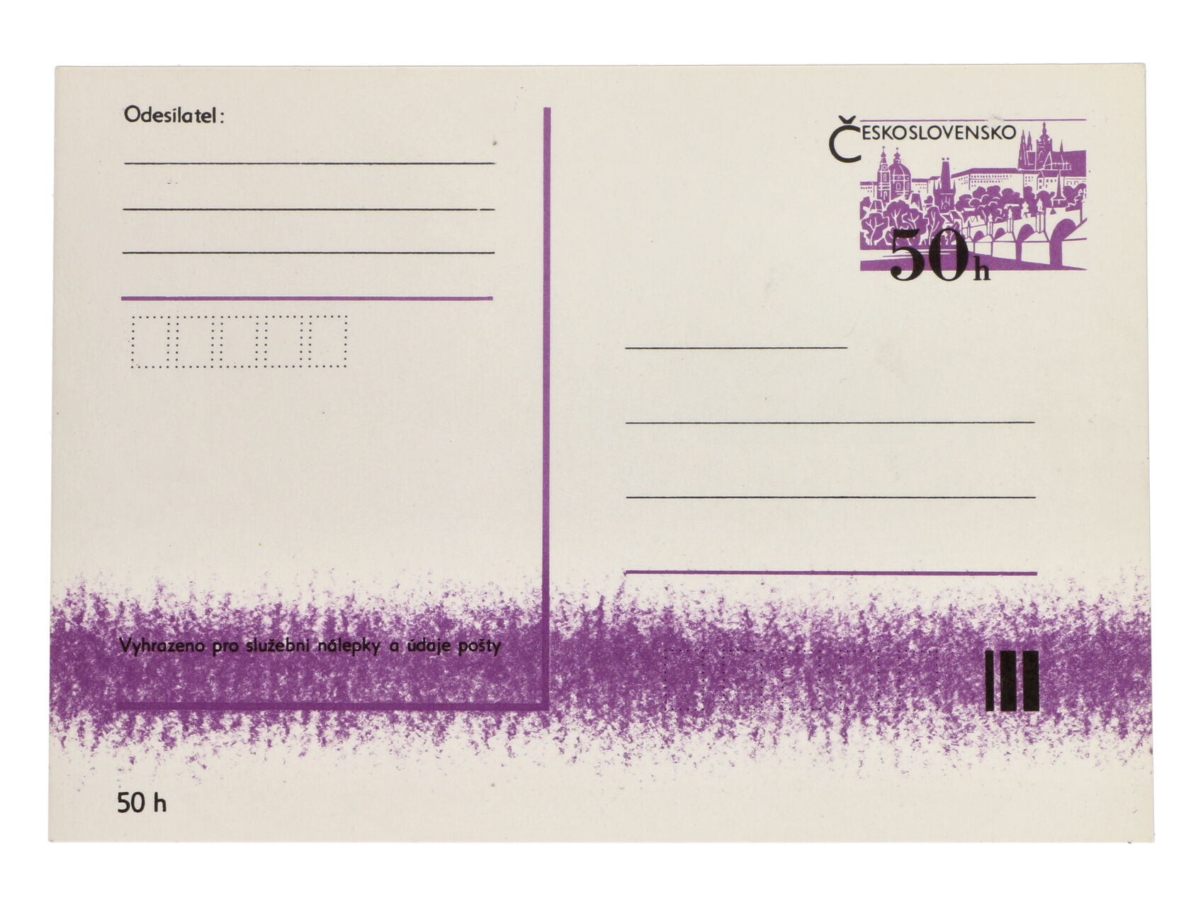 CDV č. 192 s širokým pruhem fialové barvy ve spodní části vzniklé stěrem, nepoužitá, dobrá kvalita, zajímavé