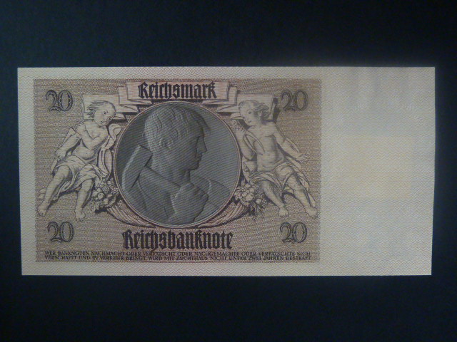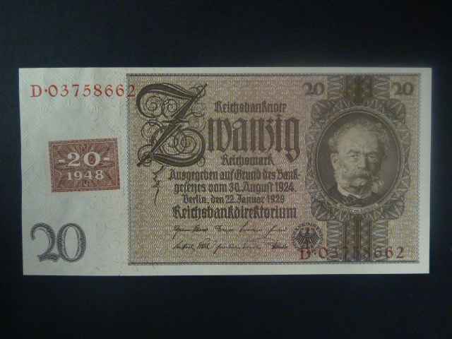 DDR - 20 DM 1948 (1929) série D válečná s kolkem, Ro. 335, Grab. SBZ-6c