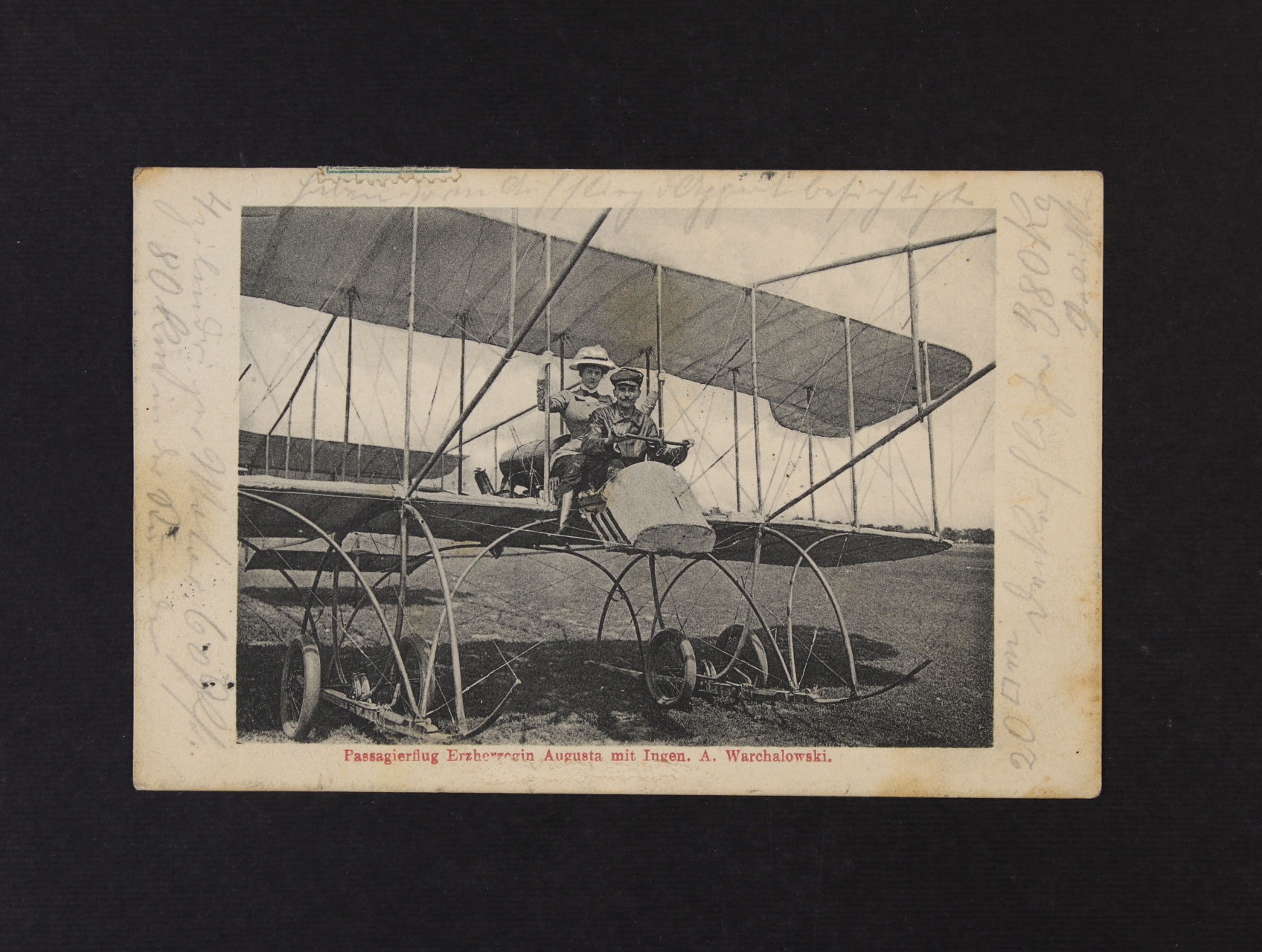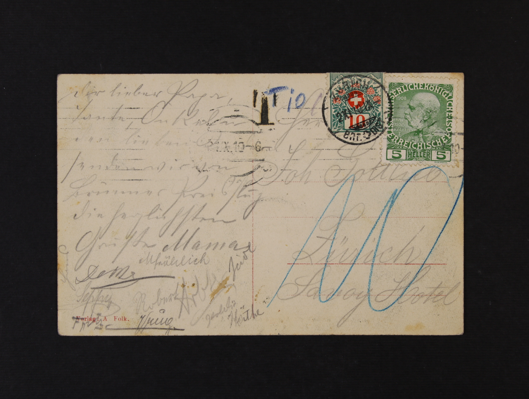 Letecké - jednobar. pohlednice použitá 1910 do Švýcarska, start letadla, zajímavé
