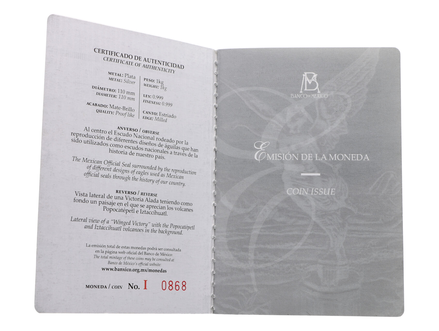 Libertad 2010 - 0.999 Ag, 1000g, dřevěná etue a certifikát_