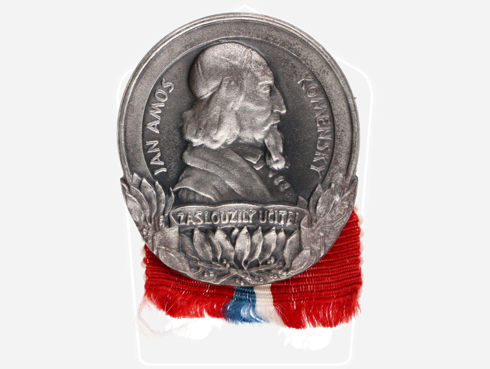 Odznak Zasloužilý učitel, punc Ag, ryzostní značka 900, značka výrobce UŘ11, (umělecká řemesla Praha)..