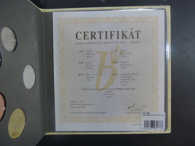sada 2024 PROOF + Ag žeton, motiv země koruny České, náklad 1750 ks, papírový obal