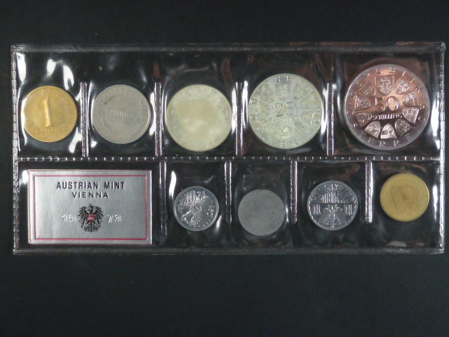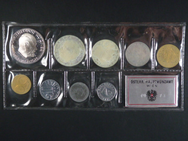 Sada oběžných mincí Rakousko 1973, včetně Ag pamětních mincí