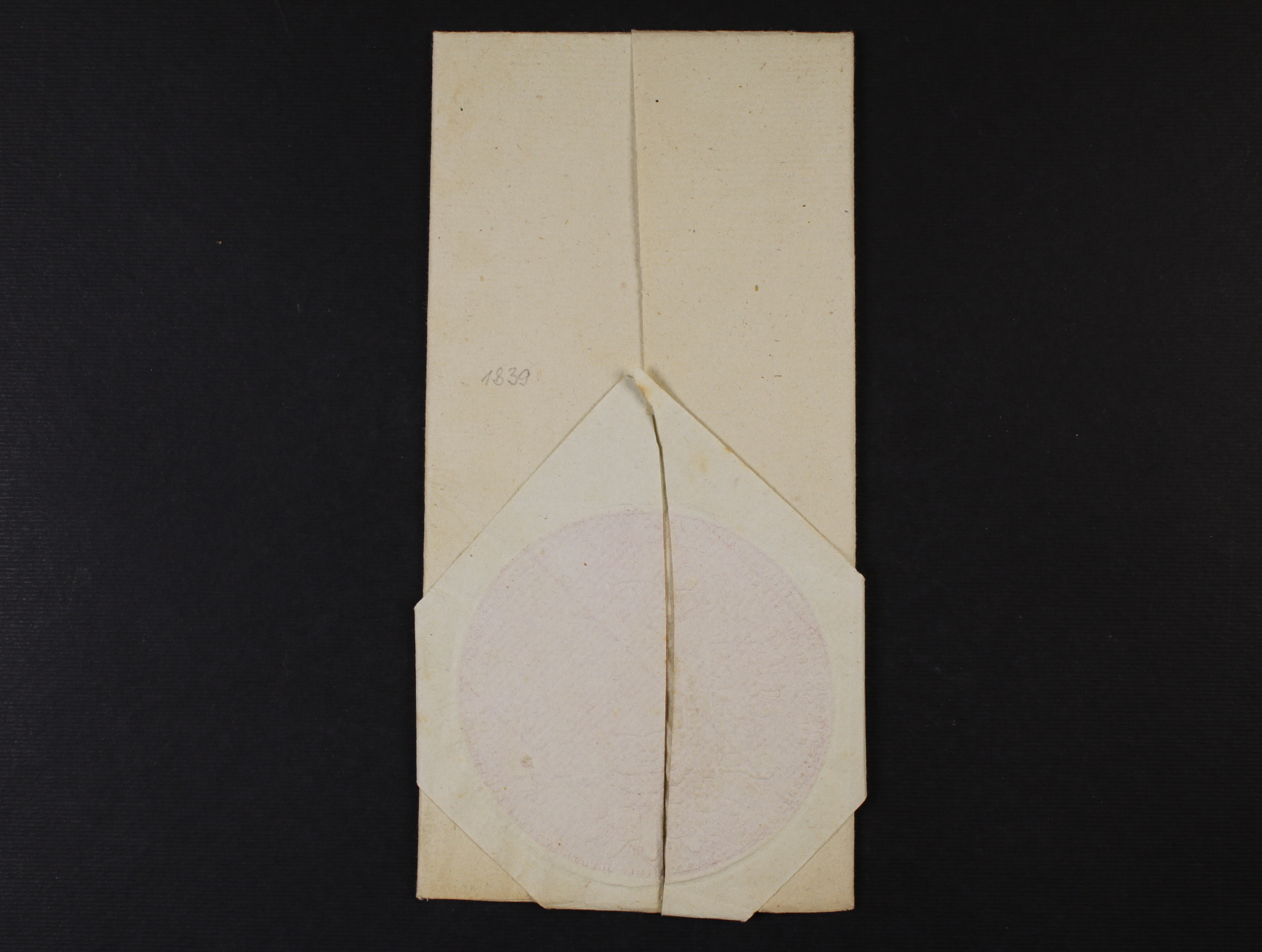 skl. dopis z r. 1839 s řádk. červeným raz. Appellatorium in Wien + červené řádk. raz. Francotutto, na zadní str. velká reliéfní papírová pečeť při otevírání přestřižena