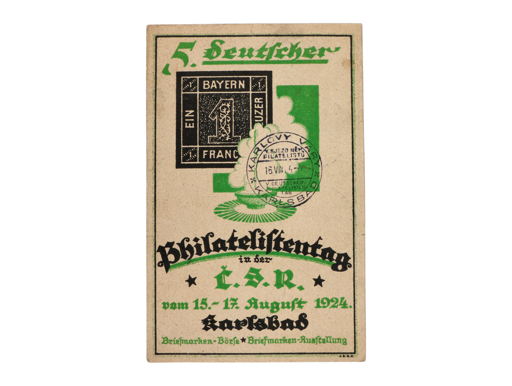 NĚMECKÝCH FILATELISTŮ 17.8.24 + přích. raz. KARLÍN 18.8.24, zajímavé, k prohlédnutí