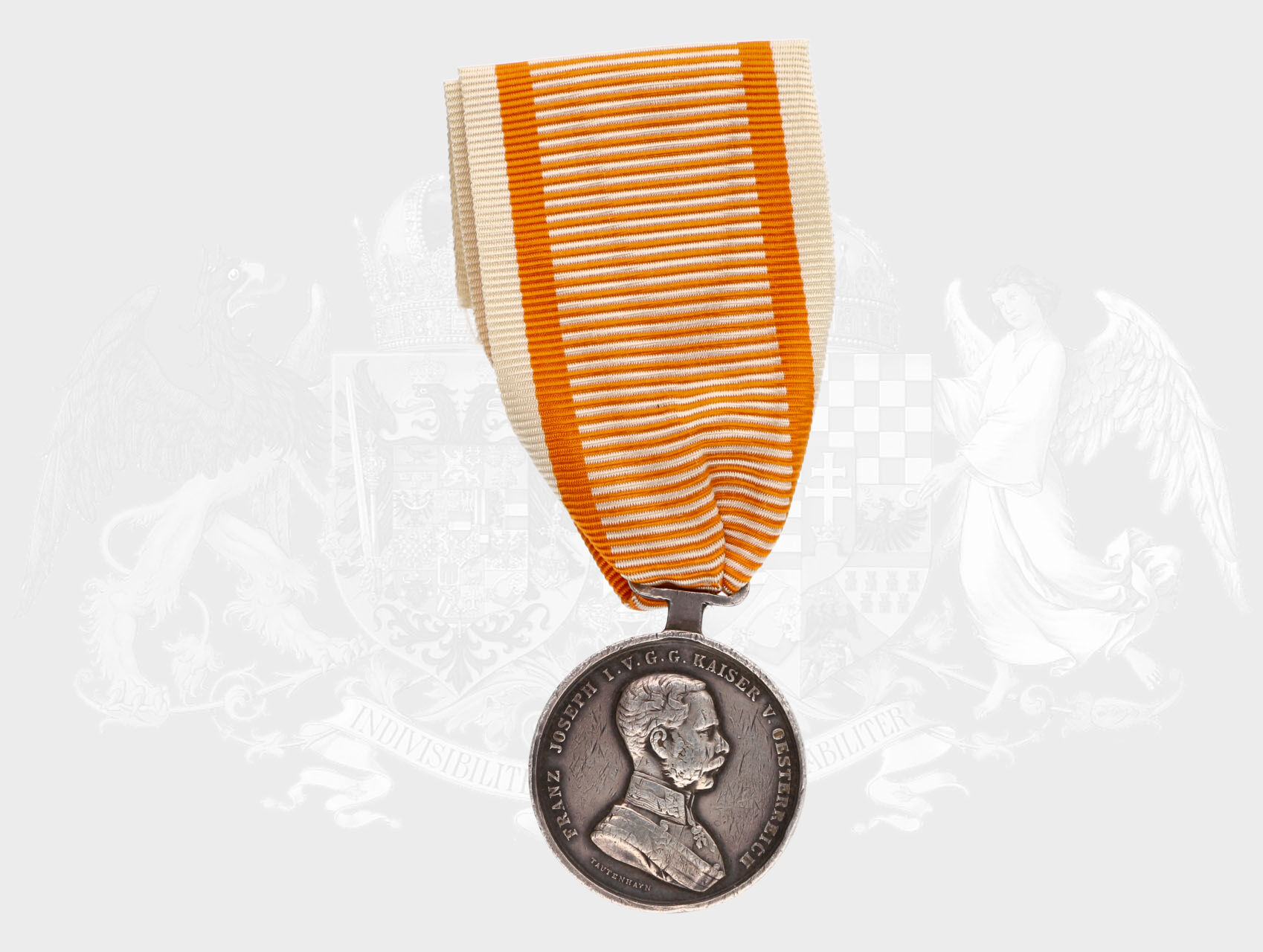 Stříbrná medaile za statečnost, 2. třídy, 7. vydání 1866-1914 F.J.I., průvlečná stuha