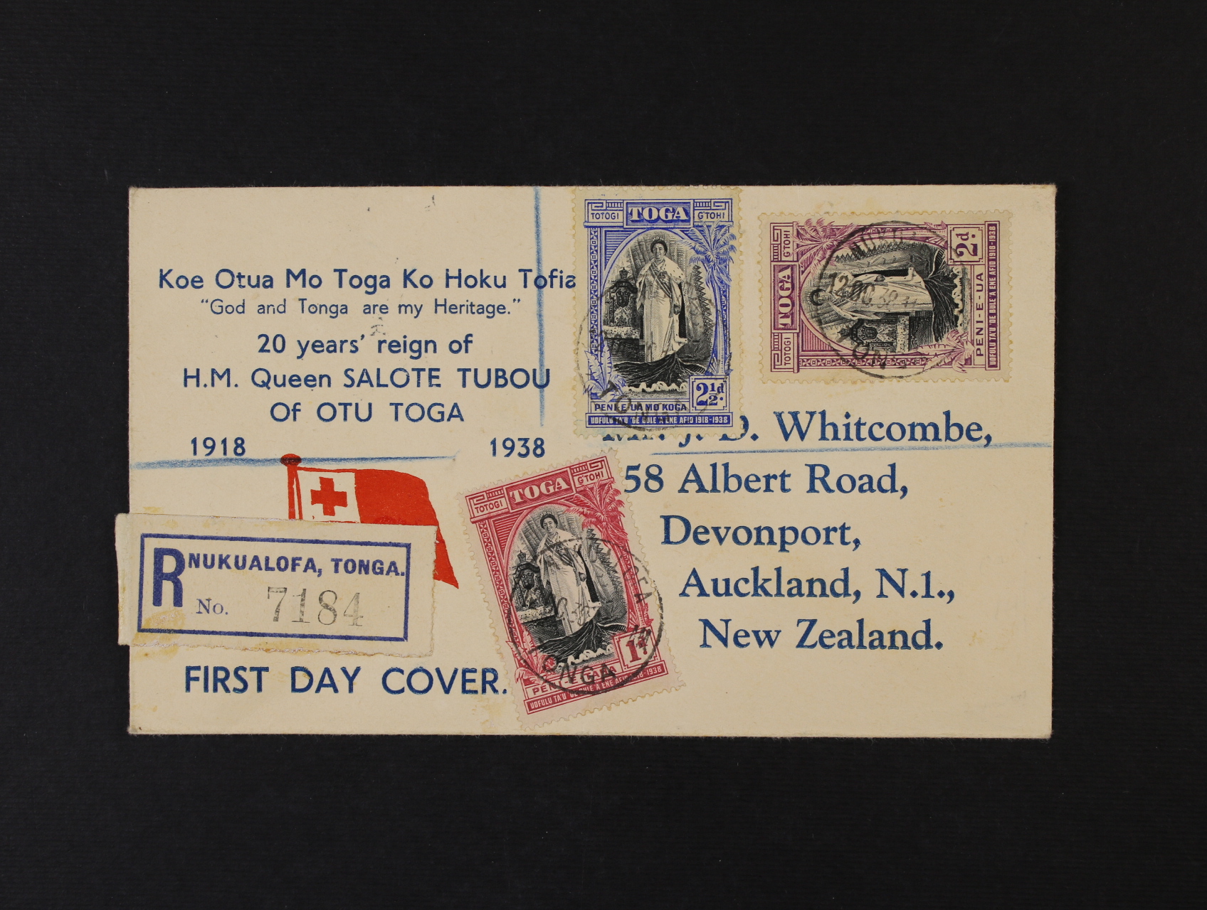 Tonga - R-dopis na Nový Zéland, zajímavá frankatura, pod. raz. NUKUALOFA 12.OCT.38, přích. raz. DEVONPORT 28.OCT.38