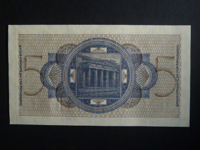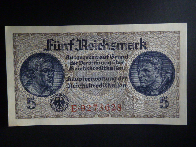 vydání pro obsazené území 1939-45, 5 Reichsmark série E, Ros. ZWK-4a