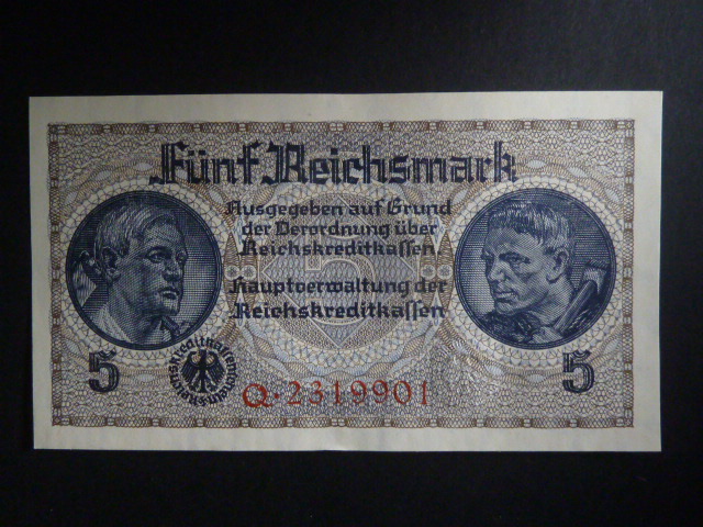vydání pro obsazené území 1939-45, 5 Reichsmark série Q, Ros. ZWK-4a