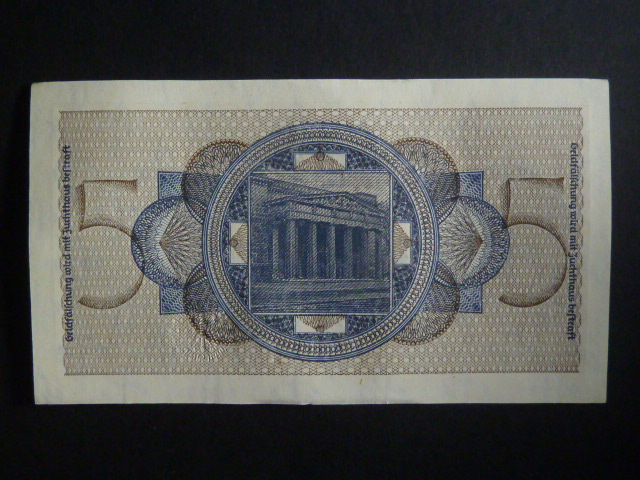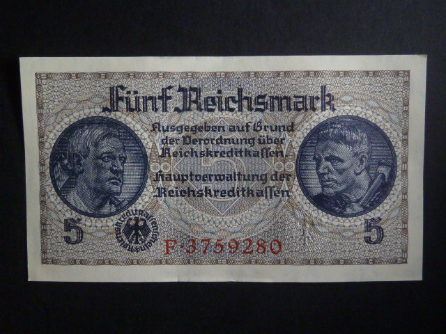 vydání pro obsazené území 1939-45, 5 Reichsmark série F, Ros. ZWK-4a
