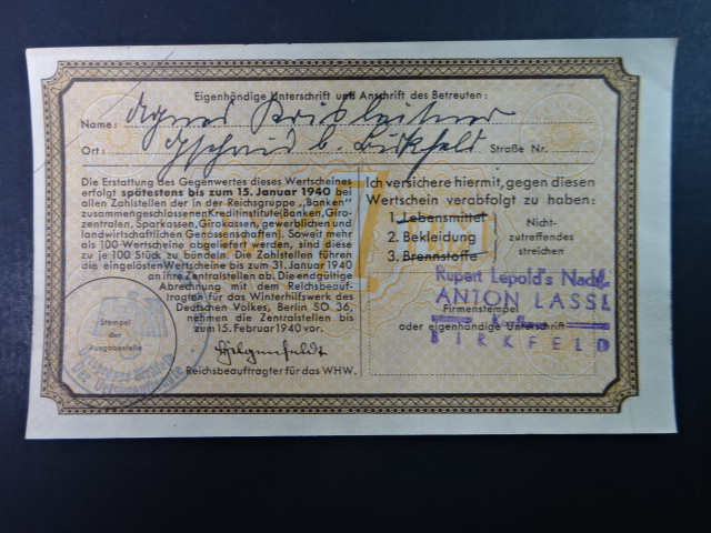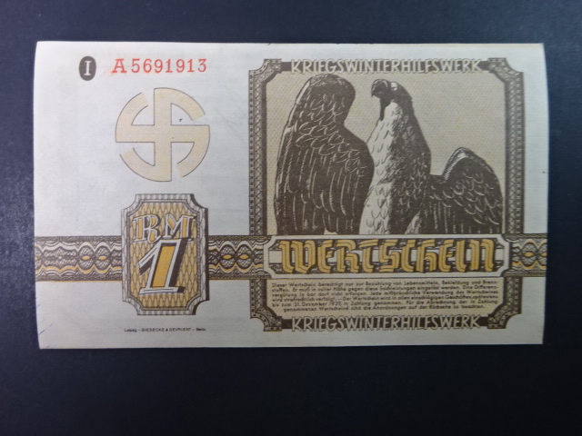 Winterhilfswerk 1934-1944 (Zimní pomoc), 1 RM 1939/1940 série A, Ro. 701, Grab. WHW-2