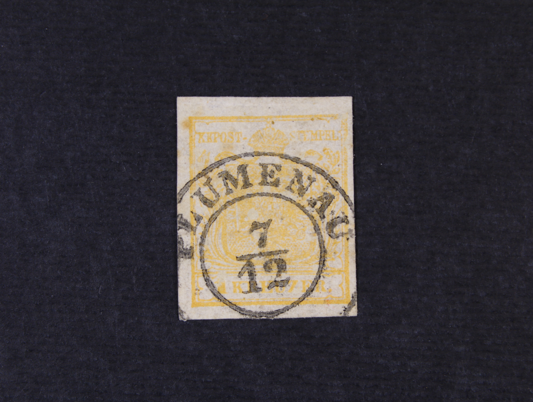 zn. Fe. č. 1 HP, typ I, "gelbocker", lux. střih, dvoukruh. kulaté raz. PLUMENAU 7.12.