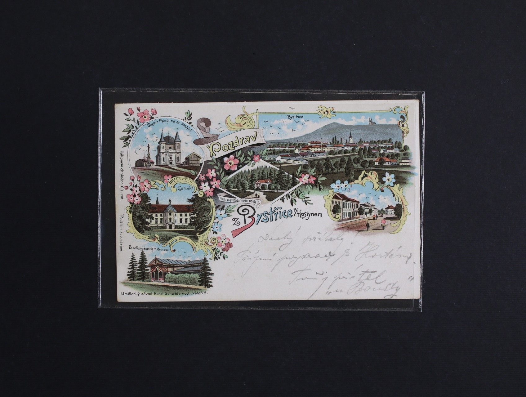 Bystřice pod Hostýnem, okres Kroměříž - bar. litograf. koláž, použitá