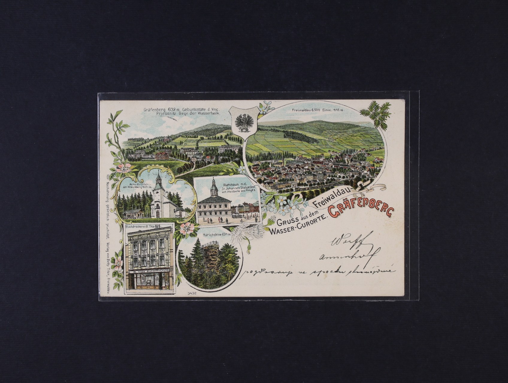 Frývaldov, okres Jeseník - bar. litograf. koláž, použitá 1898, dobrá kvalita