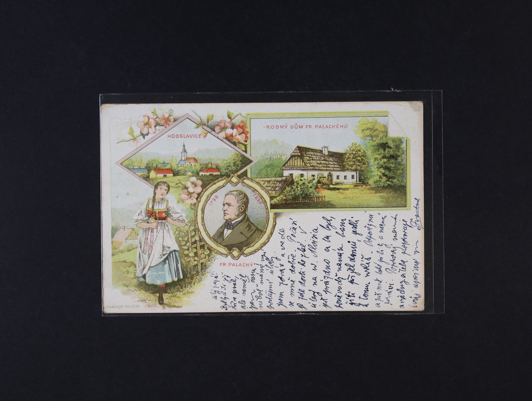 Hodslavice, okr. Nový Jičín - bar. litograf. koláž, použitá 1898
