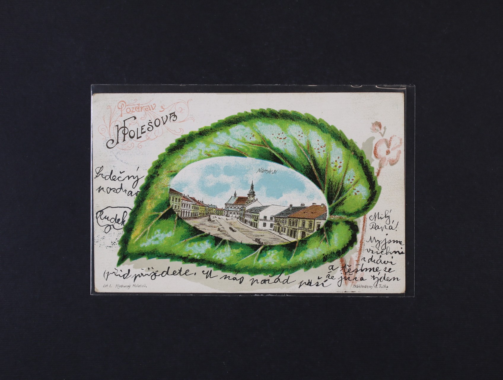 Holešov, okr. Zlín - bar. litograf. koláž, použitá 1898, dobrá kvalita