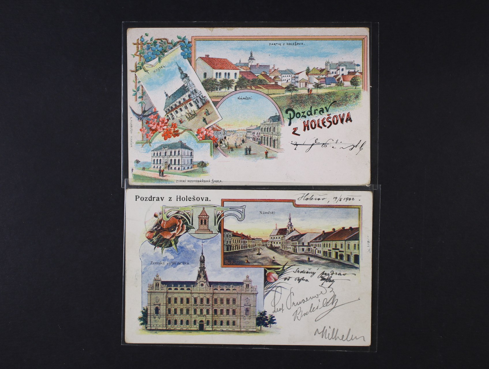 Holešov, okr. Zlín - dvě bar. koláže, 1x použitá 1902