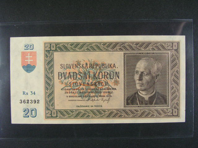 20 Ks 15.9.1939 serie Rs34, Ba, 47b, Pi. 5, velmi dobry stav