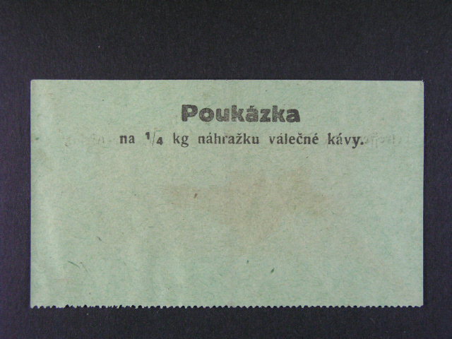 poukazka na 1/4 kg nahrazku valecne kavy, text cs. - nem., raz. Ludwig Tramer Brno, Adlergasse 14