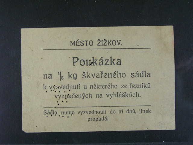 poukazka na 1/8 skvareneho sadla - b.d. Mesto Zizkov