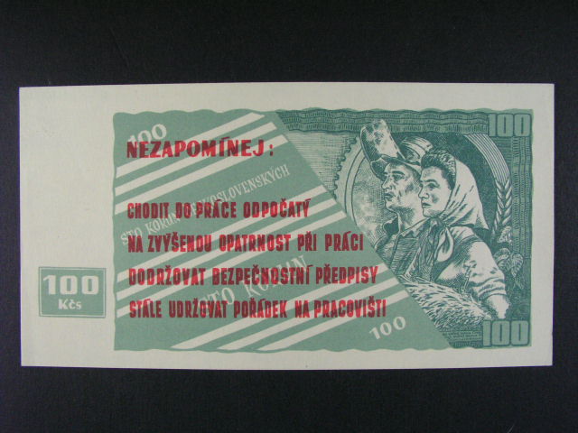 CSSR, propagacni bankovka 100 Kcs - bezpecnost prace, vyd. PAL n.p. Kbely u Prahy