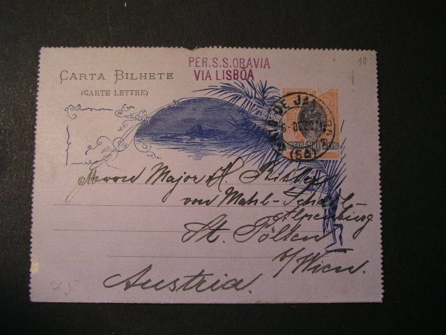 obrazová dvoudílná celina z Brazílie v r. 1897 zaslaná do Rakouska a Japonská celina zaslaná v r. 1912 do Rakouska