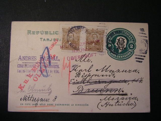 sestava 3 ks dofrank. celin z Jižní Ameriky do Evropy v letech 1900 - 15, zajímavá cenz. raz., mj. Militar. Zensur Br?nn ...