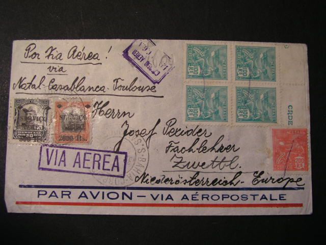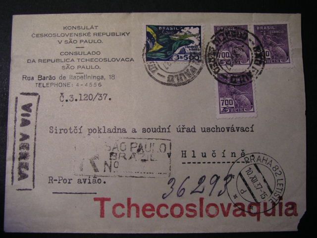 sestava 3 ks let. dopisů do ČSR v r. 1932 - 40 (Brazílie, Egypt, Chile), dekorativní