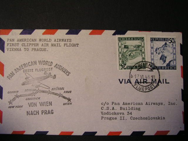sestava 5 ks prvních a výstavních letů z Rakouska, NDR a ČSR, např. Wien - New York 1946,