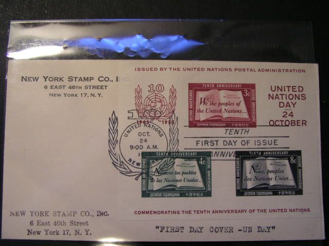 UNO New York - FDC frank. Bl. Mi. č. 1, typ I
