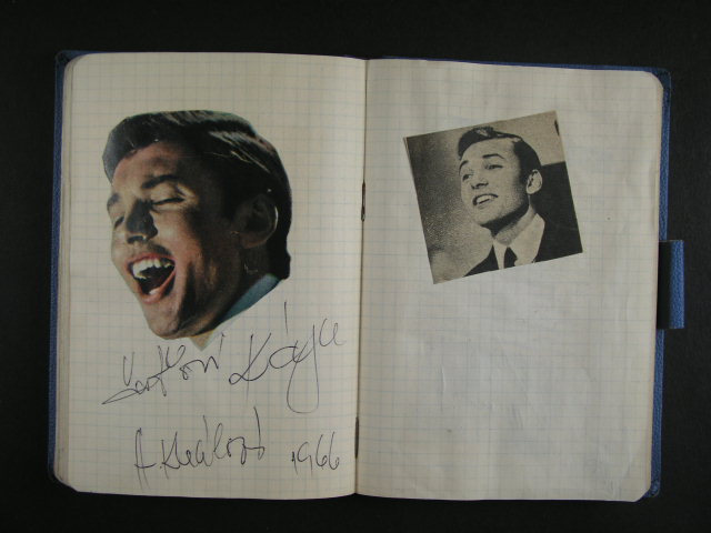 notes formatu A6 s ruznymi fotografiemi a obrazky hercu, zpevaku a jejich venovani s vlatnorucnim podpisem, mj. J. Grossmann, Urbankova, Vostrel, Neckar, Matuska, Gott, E. Haken, Pixa, Brzobohaty, Raz, Höger, Hornicek, Vydra, Effa, Hrusinsky, Werich - celkem 90 podpisu