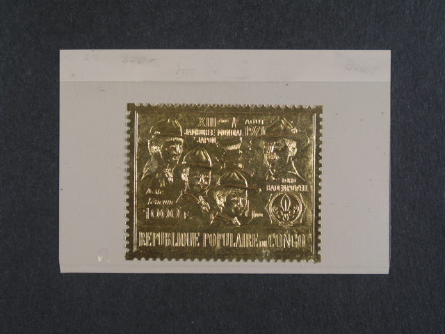 Kongo (Brazzawille) - zn. Mi. c. 311 na zlate folii 1000Fr JAMBOREE MONDIAL 1971 JAPAN