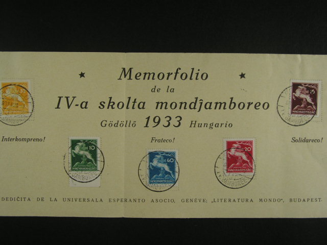 Madarsko - pam. list frank. skautskymi zn. Mi. c. 511 - 15 s raz. GÖDÖLLÖ IV. JAMBOREE 2.AUG.1933, zajimave