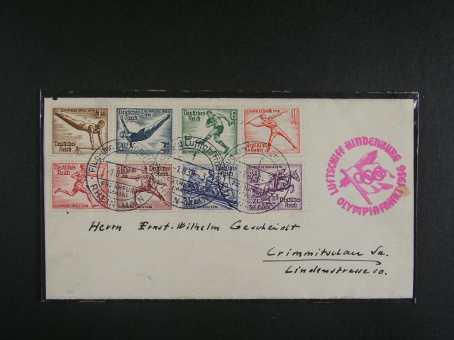 OH Berlin 1936 - predni strana dopis frank. zn. Mi. c. 609 - 16 prepraveneho zeppelin. postou (OLYMPIAFAHRT 1936)