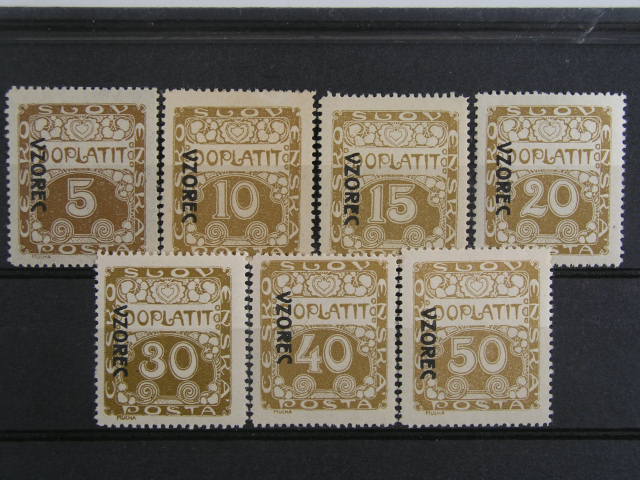 607 zn. DL c. 1 VZ, DL 5 VZ, DL 9 VZ, DL 13 VZ, RZ 11 1/2, pretisk vlevo, kat. cena 8200 Kc, velmi dobra kvalita 5000