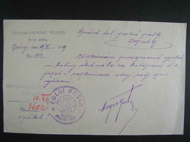 Sibir - formular vyuctovani sluzneho za listopad 1919 ... s raz. PP c. 3, velmi zajimave, dobra kvalita