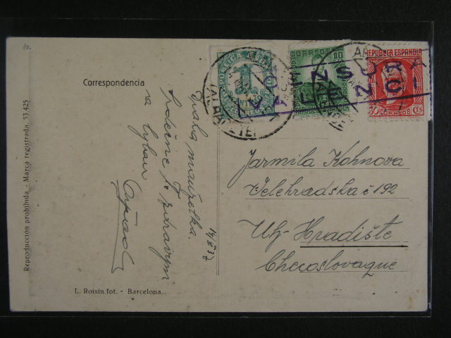 Spanelsko - celistvost od cs. prislusnika Interbrigad, pod. raz. ALBACETE 14.5.1937