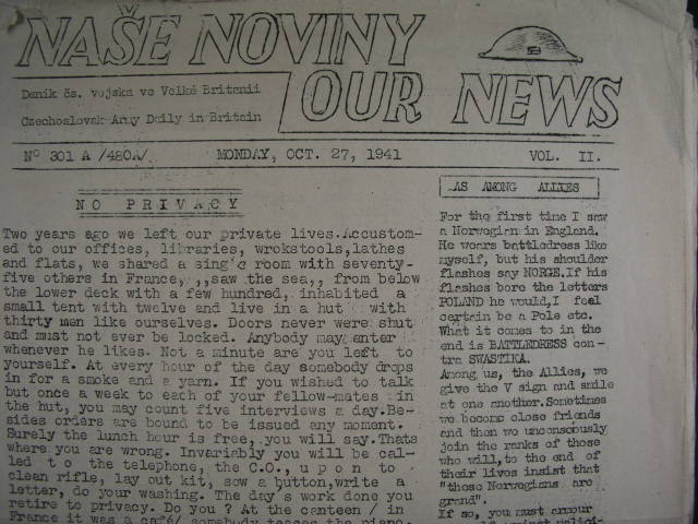 Anglie - sestava dopisu, ruznych dokladu (mj. NASE NOVINY - OUR NEWS No. 301 ze 27.Oct.41), pam. listu + denik s popisy a kresbami letadel - pocatecni datum Londyn 15.12.42, zajimave