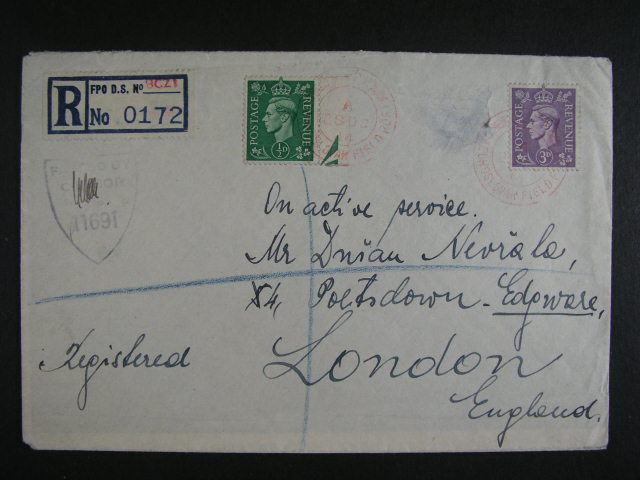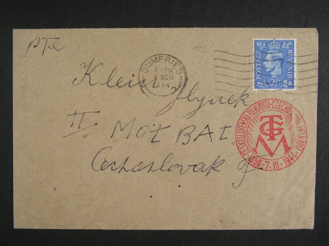 Anglie - R-dopis mezi prislusniky cs. jednotek, pod. cervene raz. CZECHOSLOVAK FIELDPOST 28.OC.44 + cenzura, zajimave
