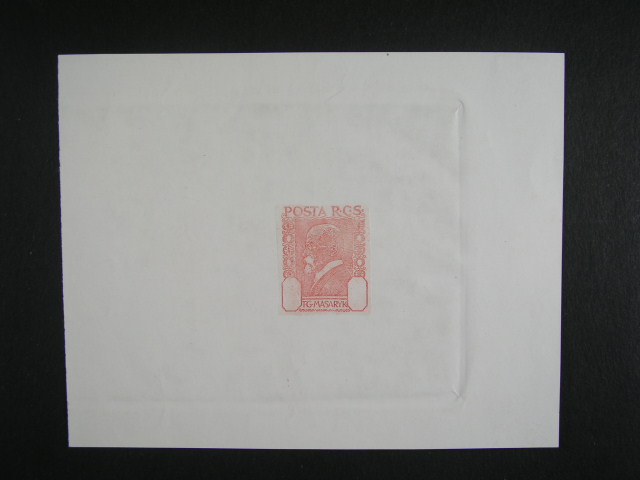 ZT neprijateho navrhu TGM v barve cervene na krid. papiru v arsikove uprave