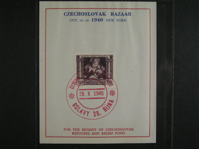 pam. list s vylepenou legionar. zn. 100h a dvoukruh. cervenym raz. CESKOSL. ODBOJ V AMERICE 28.10.40 OSLAVY 28. RIJNA