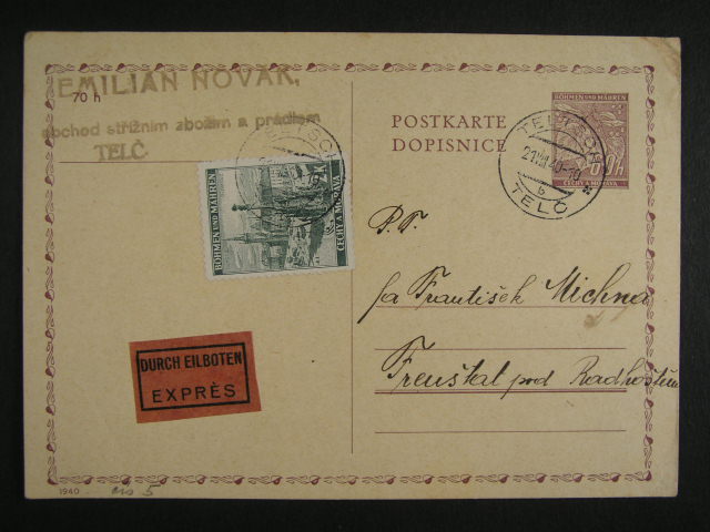 R-KL frank. zn. c. 30 + 34 a EXPRES CDV 7 dofrank. zn. c. 34 s raz. STEINITZ resp. TELTSCH 1940
