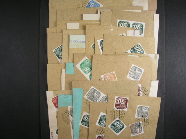 sestava 45 ks balik. vystrizku na casti adresni pasky se zn. NV c. 1 - NV 9, nasobne, smisene a vysoke frankatury, zajimave