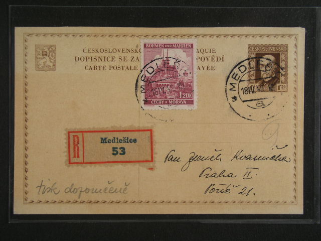 Predbezne - CDV c. 34 RECO do Prahy dofrank. zn. c. 32, pod. raz. MEDLESICE 18.4.40, vzacny vyskyt