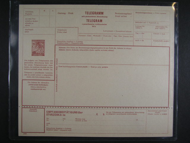 CTU c. 1a TELEGRAM s dvojjazycnym textem, nepouzity, lux. kvalita, kat. cena 9000 Kc