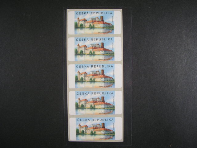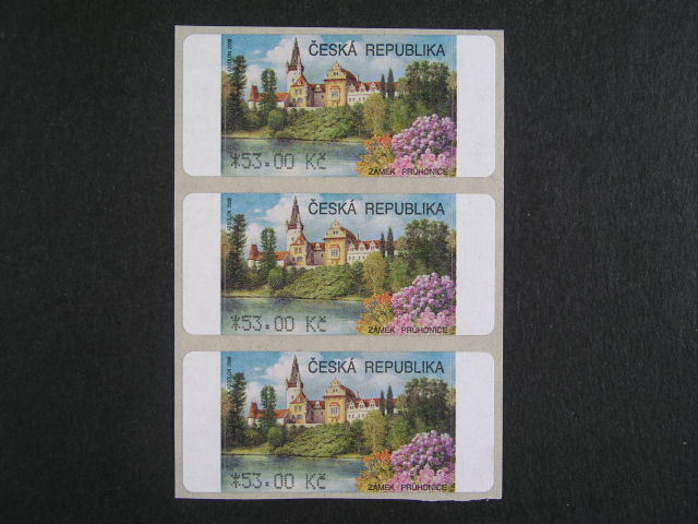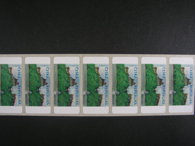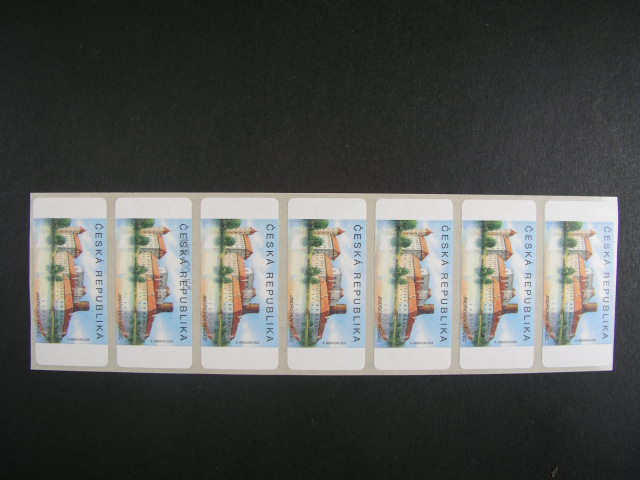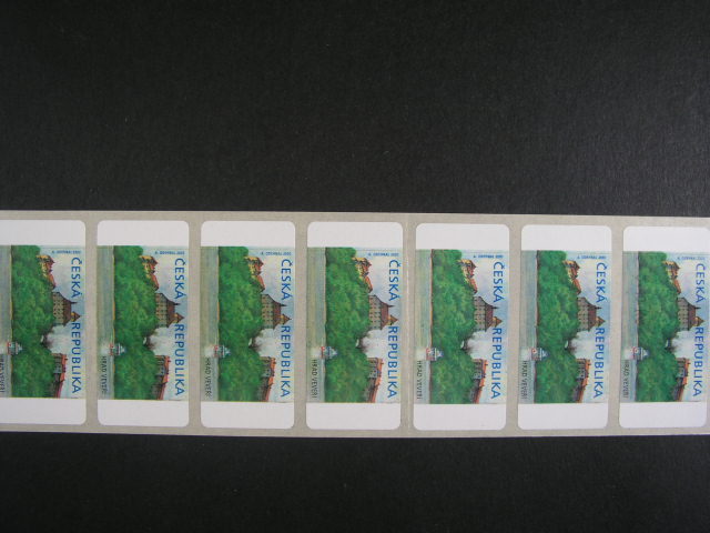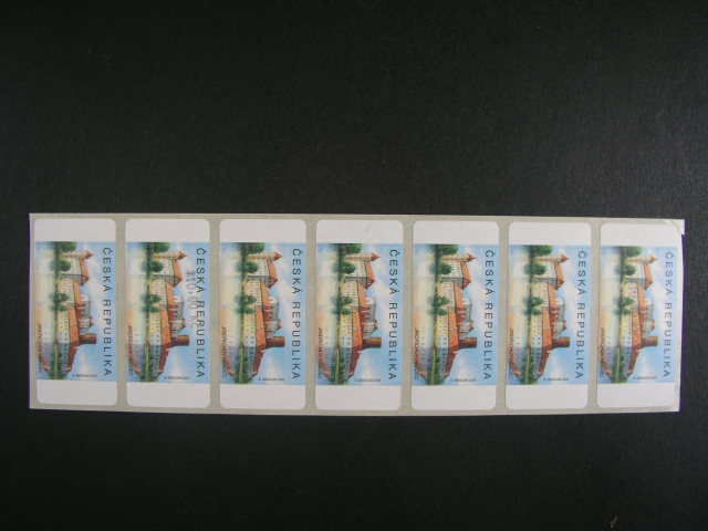 AZ 3 v 7mi-pasce, 6 zn. bez hodnotoveho oznaceni, na jedne hodnota 35 Kc se silnym posunem az do napisu CESKA REPUBLIKA