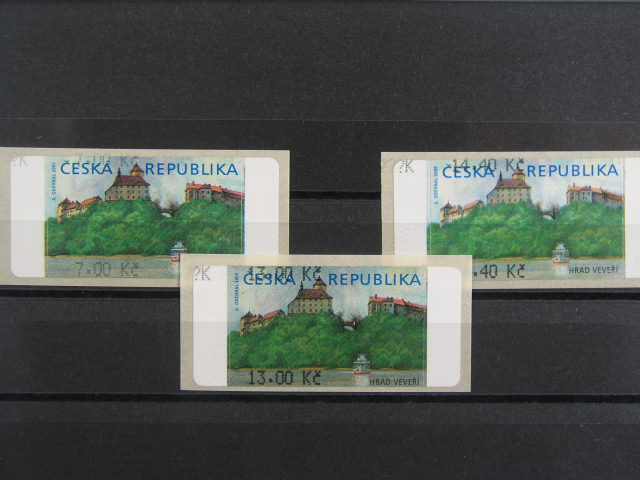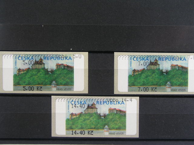 zn. AZ 1, typ II hrad Veveri v 7mi-pasce, na jedne zn. posun hodnoty 5,40, ostatni bez hodnotoveho oznaceni, modry papir